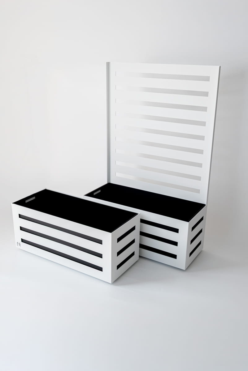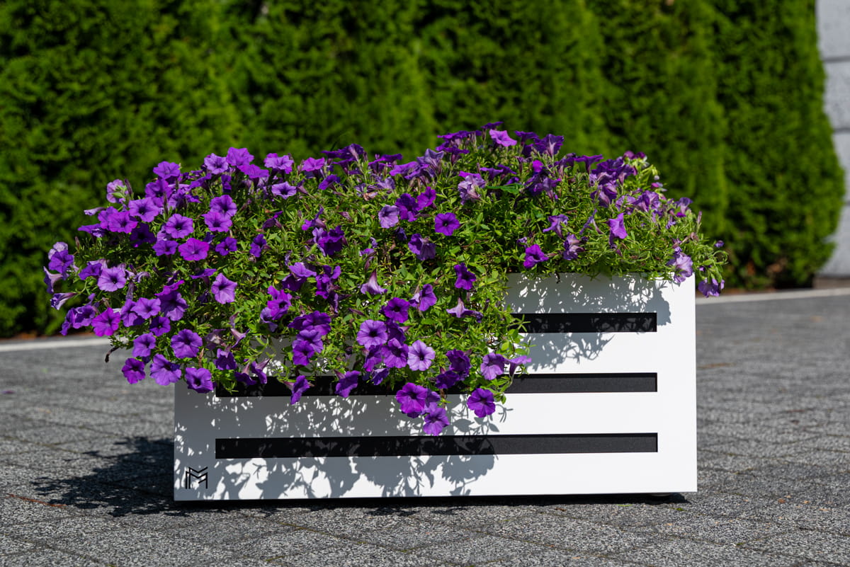 LUMO to wydłużona, geometryczna donica aluminiowa zaprojektowana jako element porządkujący przestrzeń. Prosta bryła oraz poziomy rytm podziałów nadają formie czytelność i skalę, dzięki czemu donica dobrze funkcjonuje zarówno we wnętrzach, jak i w otoczeniu zewnętrznym.
