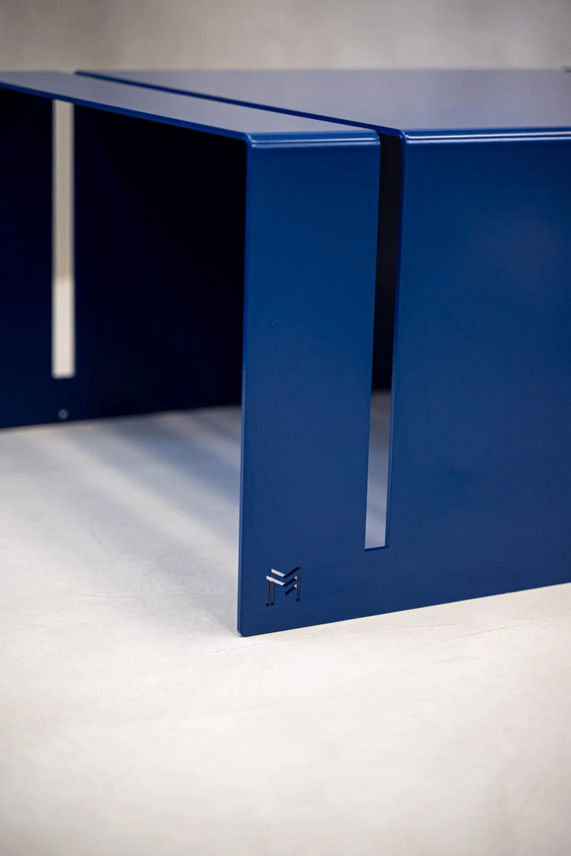 Stolik wykonywany jest w całości ze stali malowanej proszkowo. Zastosowane wykończenie o drobnej strukturze podkreśla charakter materiału i zwiększa odporność powierzchni na codzienne użytkowanie.