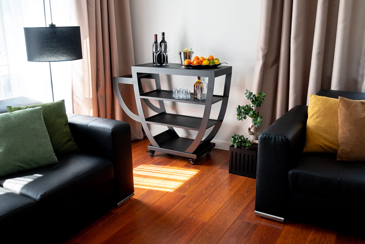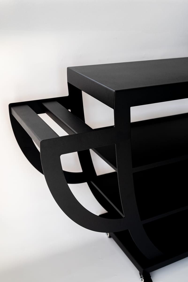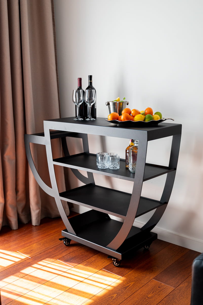 Układ półek porządkuje funkcję: górna powierzchnia przeznaczona jest do serwowania, pracy lub ekspozycji, dolna do odkładania i przechowywania. Stolik nie narzuca jednej roli – sprawdza się jako mebel pomocniczy w domu, a także w restauracjach, hotelach i biurach.